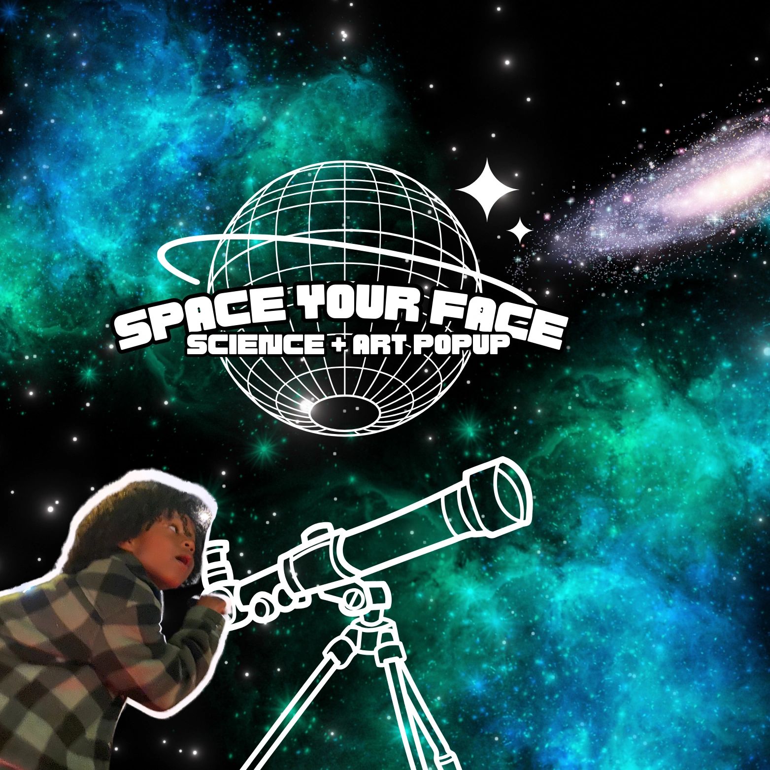 Space Your Face aims to ignite a passion for cosmic wonder and the beauty of artistic expression through pop-up education opportunities supported by generous donations- no minimums.